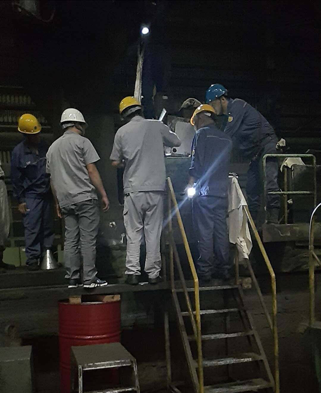 2018年6月3日,寶鋼厚板軋輥進(jìn)口磨床主軸出現(xiàn)卡死故障,可能造成該磨床長時間停機。緊急之中,寶鋼厚板部悉聞我司曾經(jīng)幫助寶鋼冷軋廠成功排除同類故障難題,立即聯(lián)系了我司。雖然我司并未有履行此次修復(fù)的義務(wù),但在獲悉這一情況后,本著“急客戶之所急”的服務(wù)理念,在經(jīng)請示公司領(lǐng)導(dǎo)同意后,當(dāng)即調(diào)遣經(jīng)驗豐富、技術(shù)過硬的花茹、楊文平、楊勝三位技術(shù)人員趕赴現(xiàn)場,當(dāng)天下午就抵達(dá)寶鋼,開展緊急搶修工作。