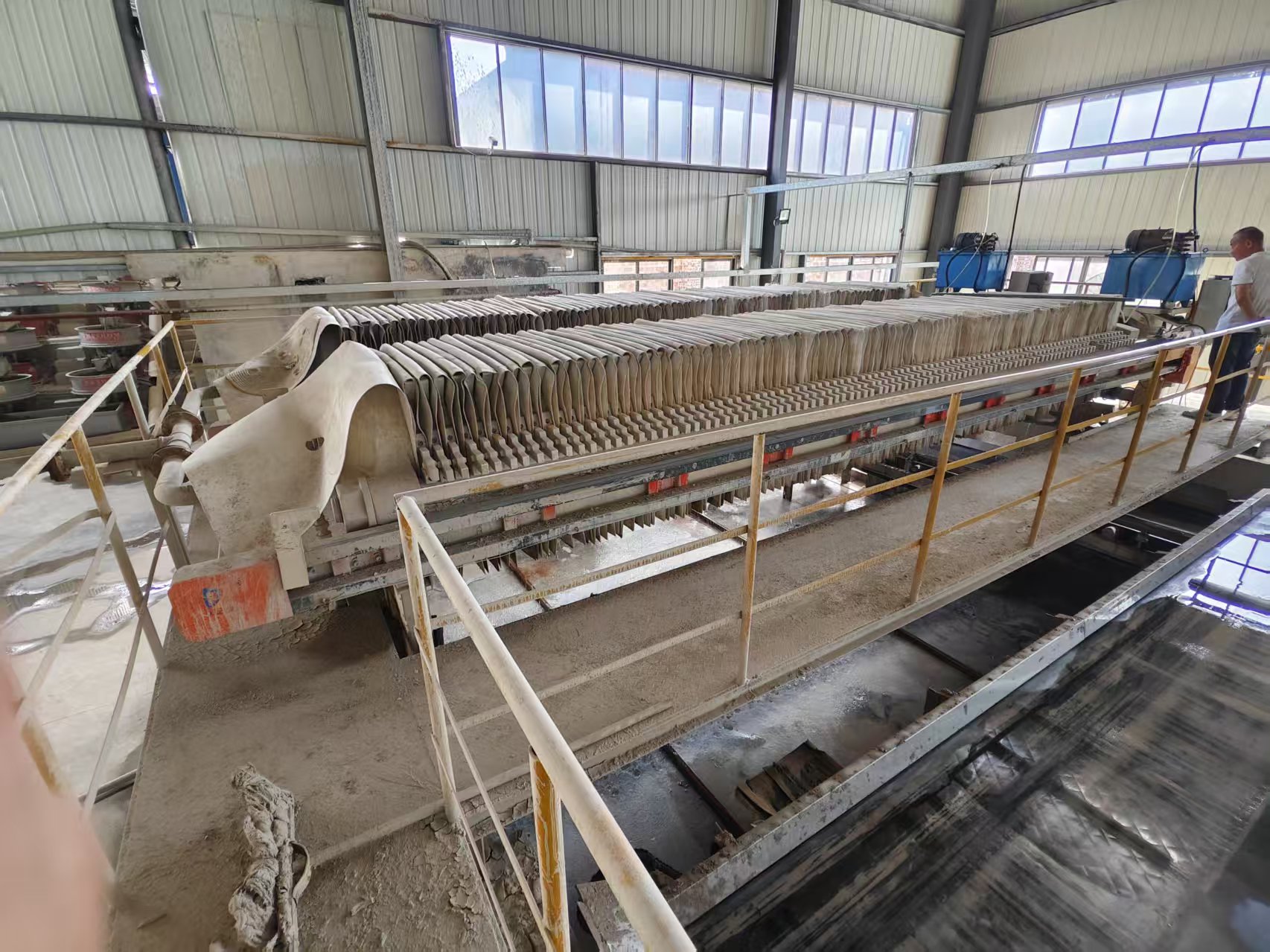 · 泥料制備:電瓷生產中,首先要將原料制成具有一定可塑性的泥料。圓形高壓壓濾機可對電瓷泥漿進行高效脫水,將泥漿中的水分壓榨至一定范圍,使泥料達到合適的含水率。經過壓濾后的泥餅含水率可低至 18%-26%。這種經過壓濾處理的泥料,后續再通過真空練泥機擠出泥段,可形成相應的坯料,用于電瓷產品的成型。